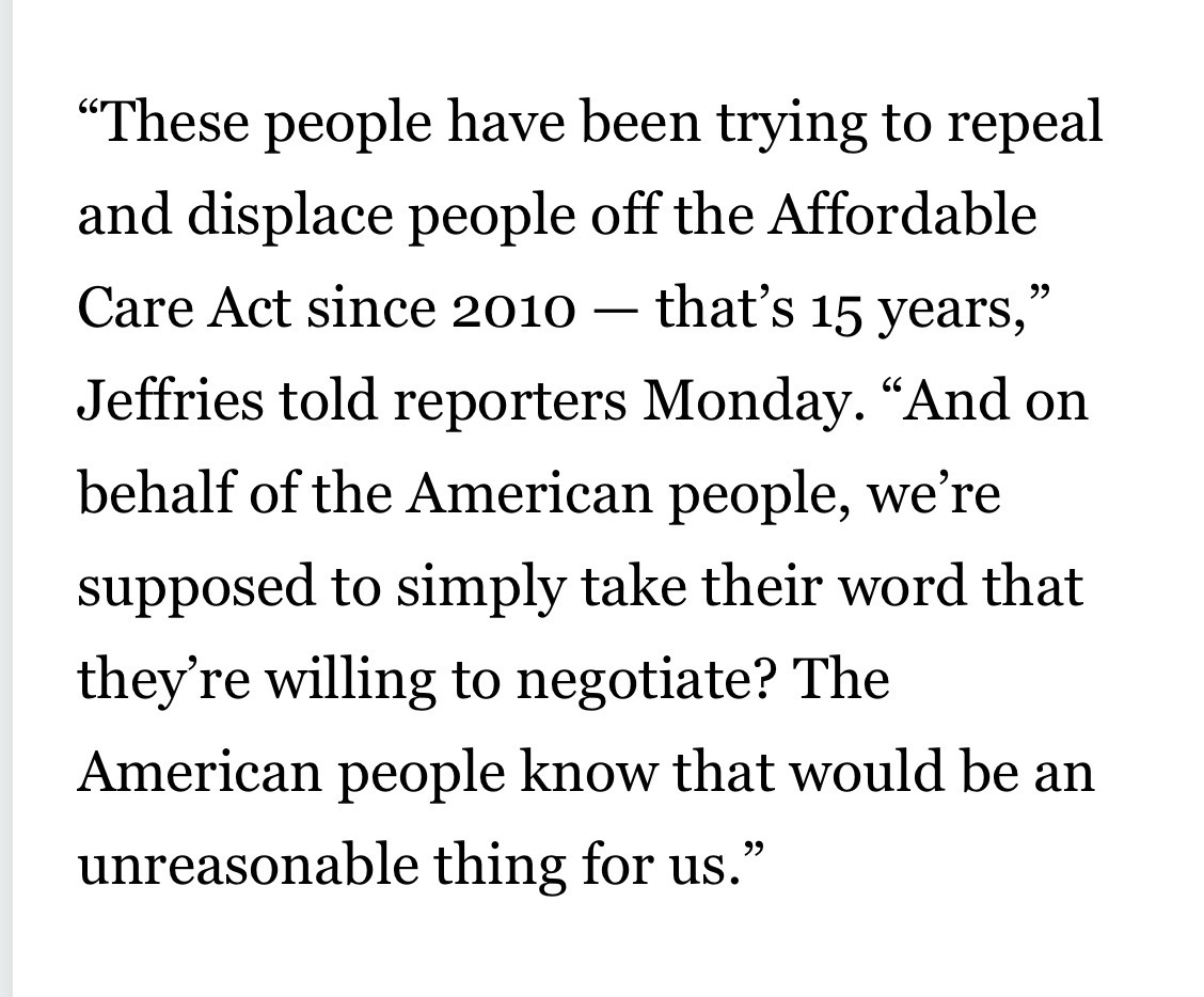 We hope this isn’t true. Trading away leverage in exchange for a pinky promise isn’t a real strategy. Republicans have been fighting to repeal the Affordable Care Act from day one and it doesn’t take a policy expert to know they can’t be trusted.