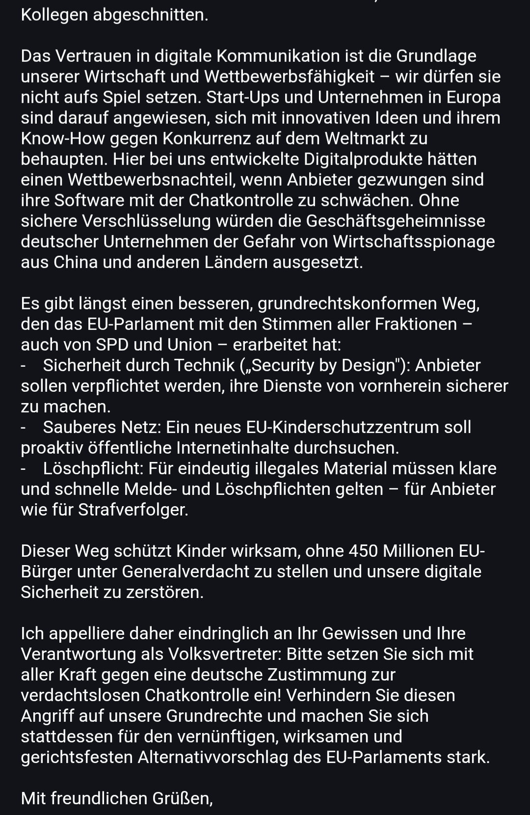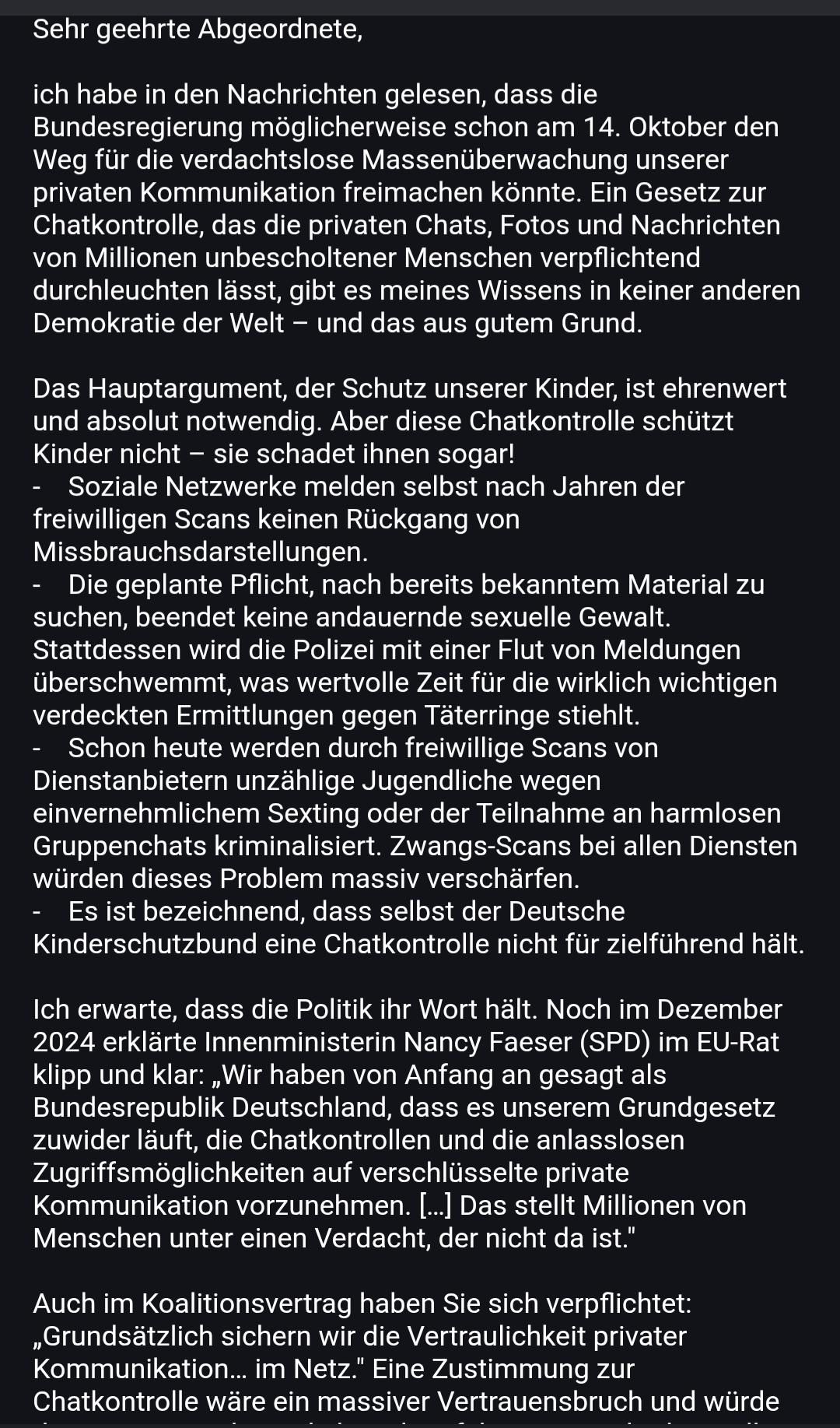 Also if any of you from Germany plan to phone the Bundestag before the 9th october regarding chatcontrol, I'll also add the email that I used for you to use as a reference what you're going to say and if you want you can also add your own words to argue against it. Try to remain calm while calling the politicians even if the topic might get you worked up and stay defiant in your cause.