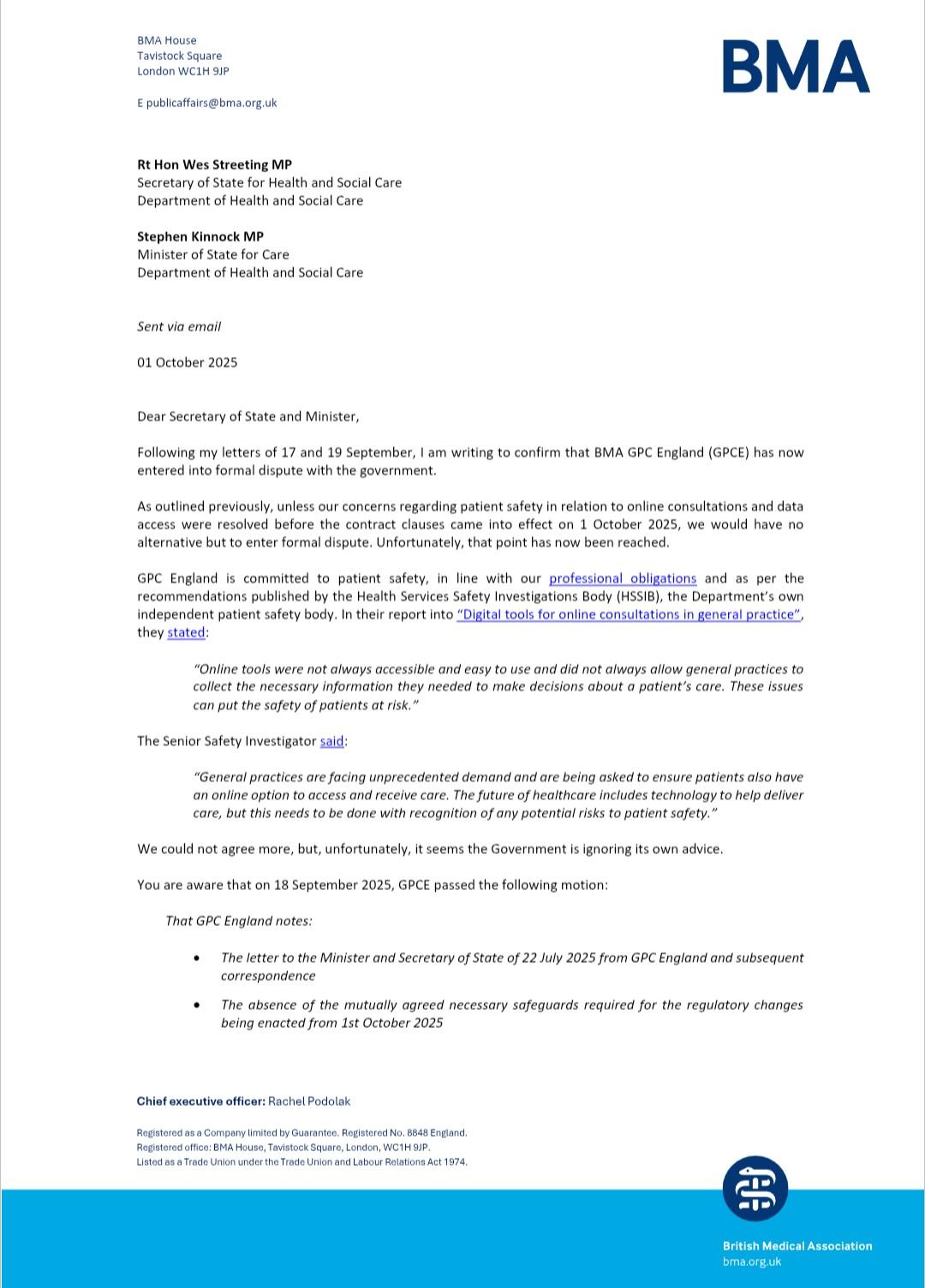 Its October 1st. Crucial patient safeguards are not in place. The BMA has entered into formal dispute with the government. And rightly so ✊