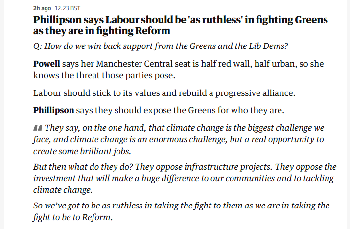 Phillipson says Labour should be 'as ruthless in fighting Greens