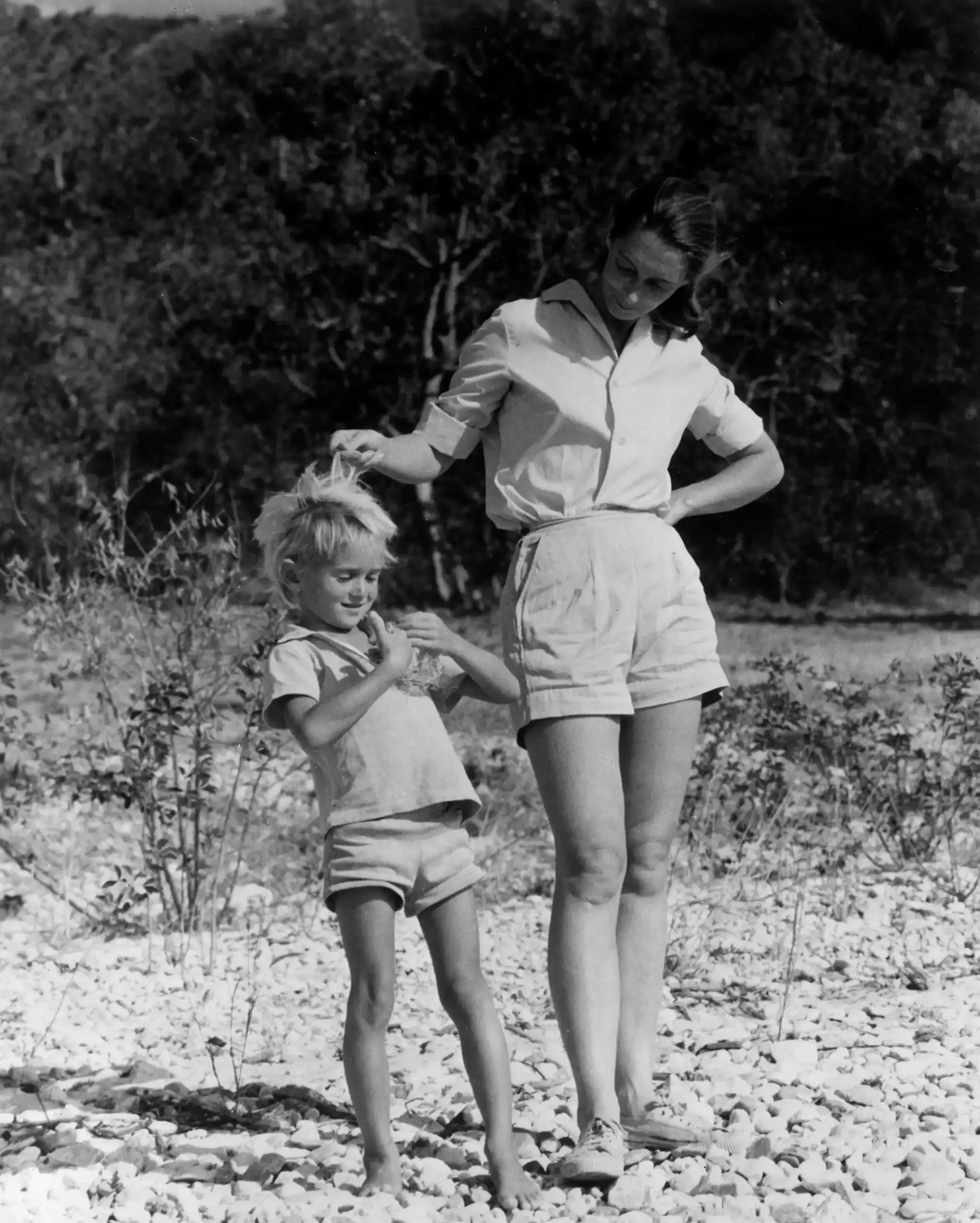 Jane Goodall with her son, Hugo Eric Louis van Lawick, in the Gombe reserve, east central Africa, 1974