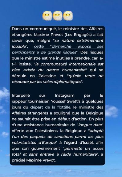 La reaction de Youssef Swatts, rappeur belge en route pour Gaza à bord de la flotille #1000Madleens : POV : le monde entier se bouge, notre Ministre parle de «risques inutiles »