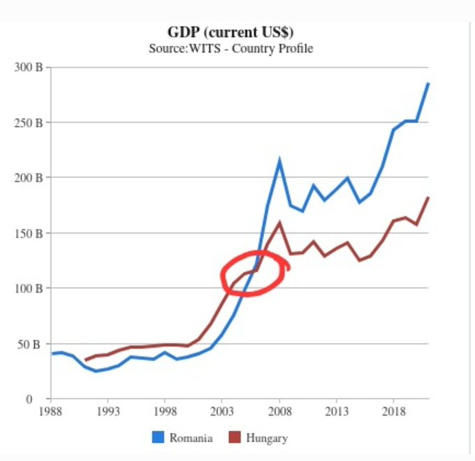 Hungary was AHEAD of Romania in terms of economy, then like a soviet vampire, the #Russia-backed scum began selling the country's future for dreams of #Moscow riches, which he now has.