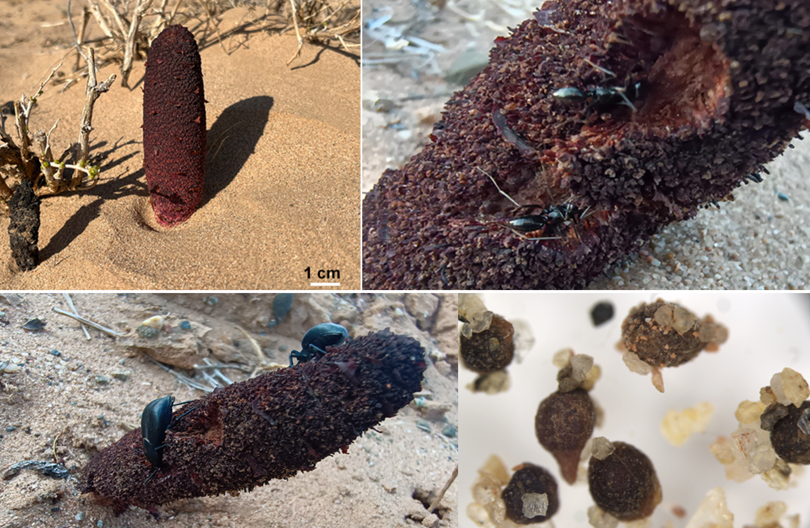 "C. songaricum is a root #parasite... And the roots of its host are located about three metres underground beneath the dry desert sand... Each seed has a little fleshy tag on it... as with all things the #ants find tasty, they haul the seeds back to the larder of their nest... three metres underground - placing them right on the same level as the nitre bush's roots"