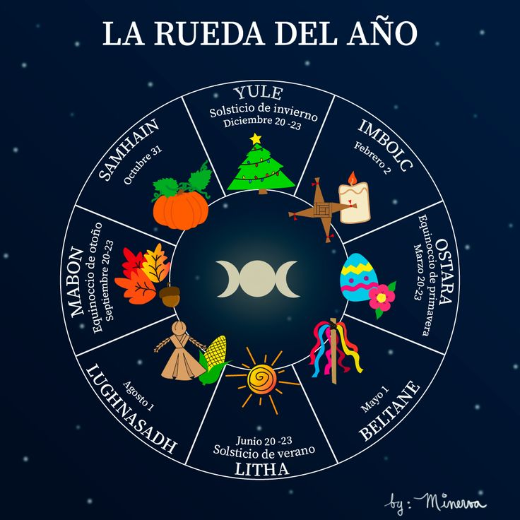 Hablando de paganismo, En la religión wicca y otras religiones paganas, la naturaleza, los procesos naturales son vistos como un ciclo continuo. El paso del tiempo es también visto como cíclico y es representado por una rueda o un círculo. La evolución de nacimiento, vida, declinación y muerte, como se experimenta en la vida humana, se repite en la progresión de las estaciones, de ahi surge la asi llamada rueda del año, para marcar y celebrar el ciclo de las estaciones Este ciclo consiste de ocho festivales llamados sabbats'. Según el paganismo, la rueda del año se refleja en nuestras vidas: nacimiento, crecimiento, declinación y muerte, donde el samhain es el cruce entre un ciclo que termina y uno nuevo que inicia.