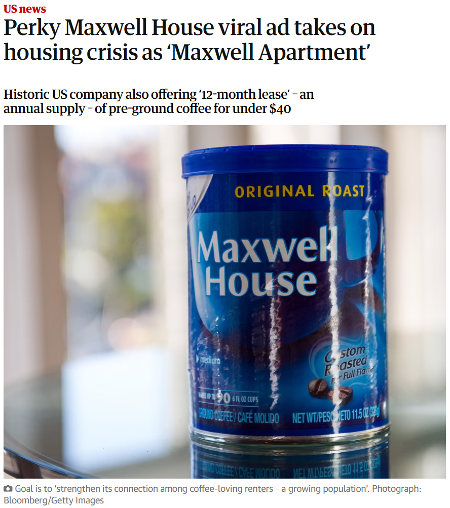 '#MaxwellHouse #coffee, a 133-year-old brand, recently launched a marketing campaign rebranding themselves as “Maxwell Apartment Coffee”