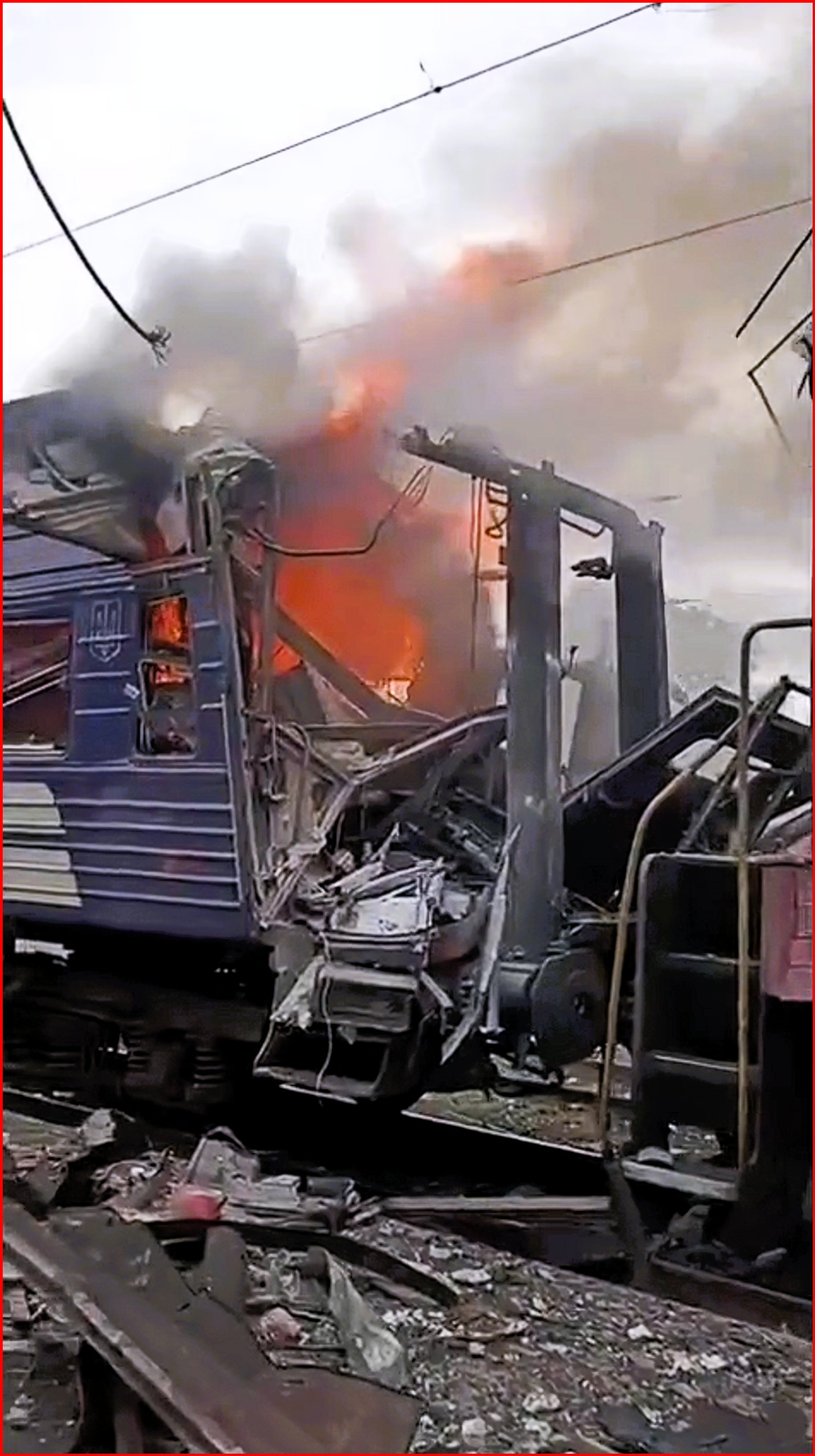 A savage Russian drone strike on the railway station in Shostka, Sumy region destroyed the civilian train and wounded more than 30 Ukrainians. The rescue is on-going to find survivors.