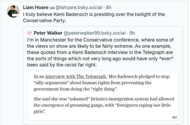 #KemiBadenoch #Tories #tory #UKPOL #UKPOLITICS #Xenophobia #Racism #Whiteness #GroomingGangs #HumanRights #ECHR