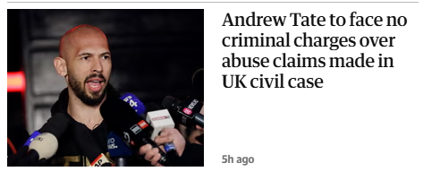 Rampant Misogynist Andrew Tate is in the news, but rather than men like him and the army of creepy boys that look up to him, the Government would have us think Trans Women are the threat....