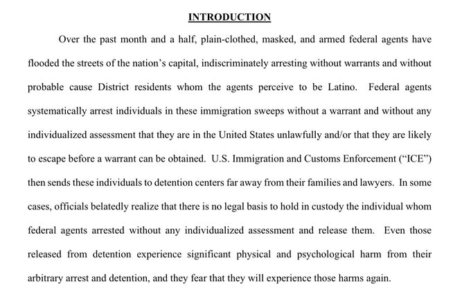 "New class action lawsuit🚨 challenges ICE's warrantless IMM arrests in DC, which they say are occurring w/o probable cause & based largely on perceived ethnicity."