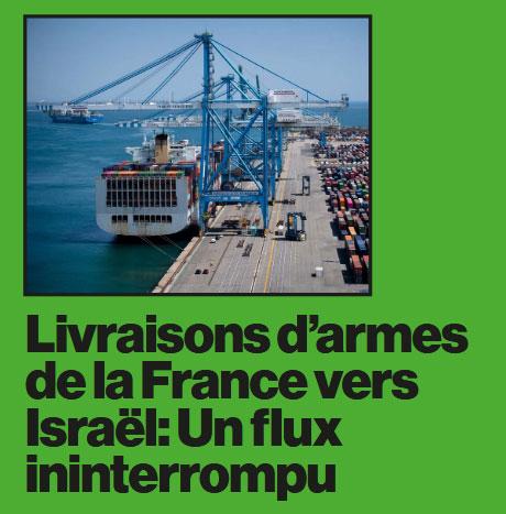 en bas texte noir : livraison d'armes de la france vers israel : un flux ininterrompu