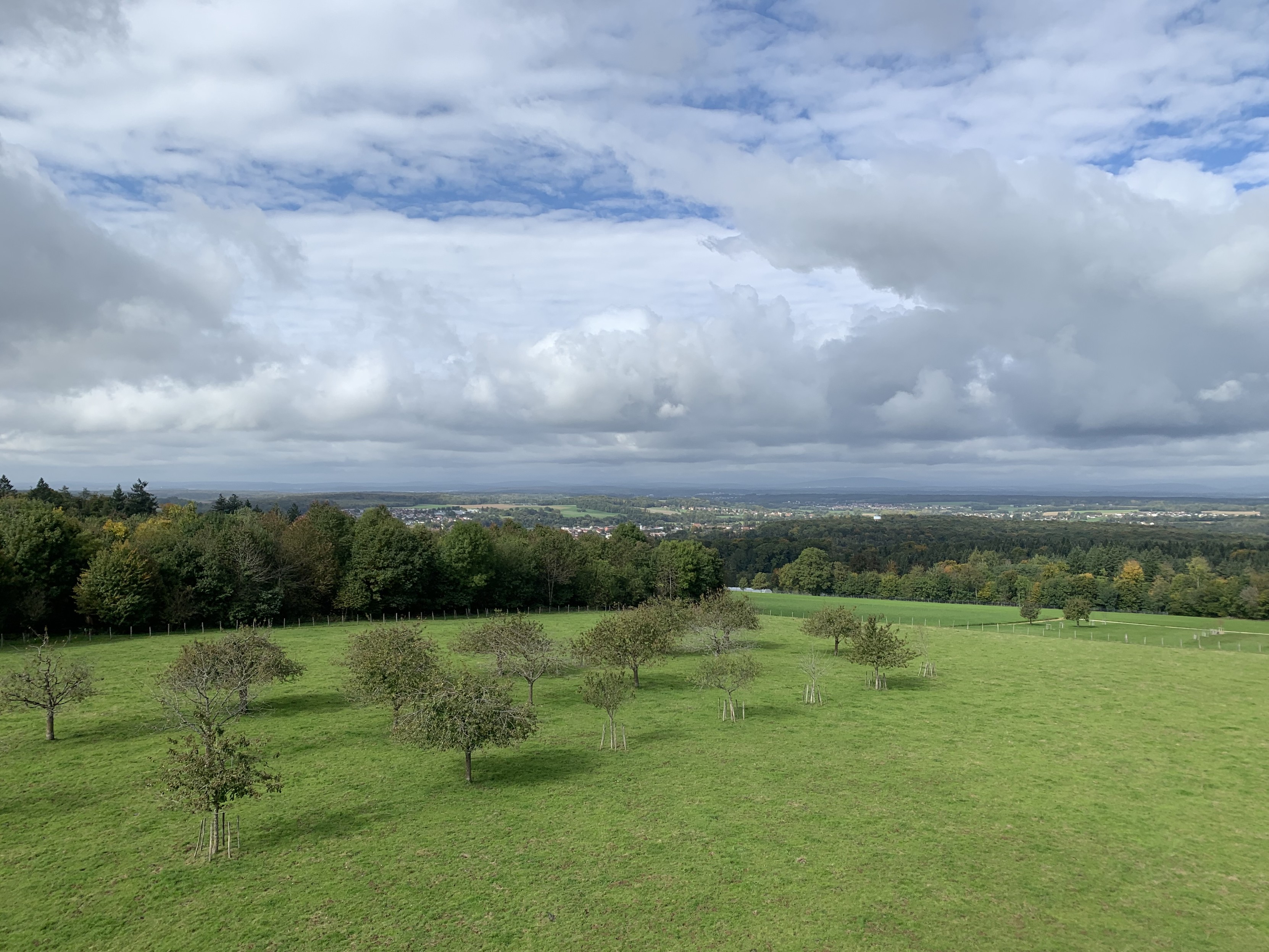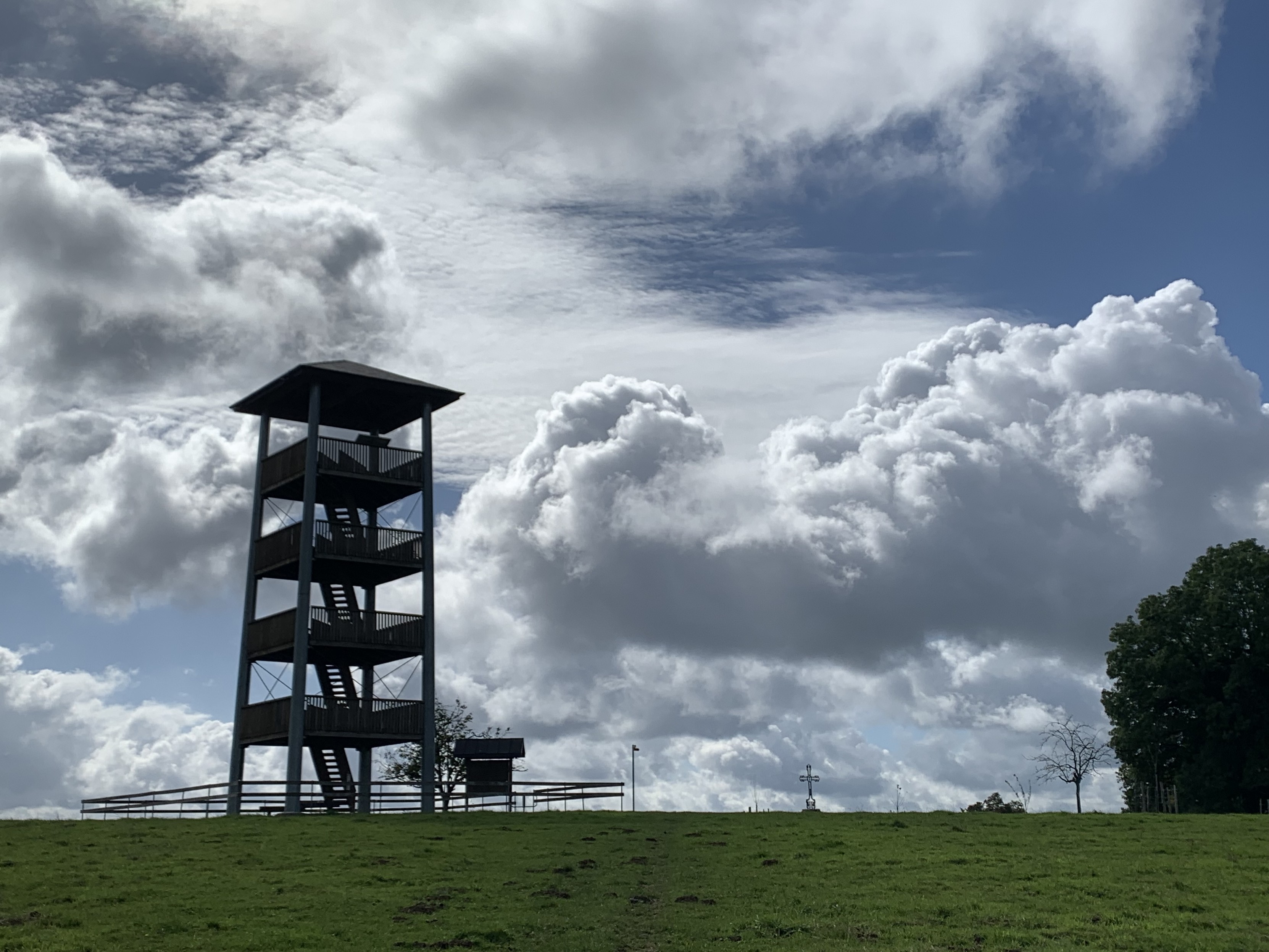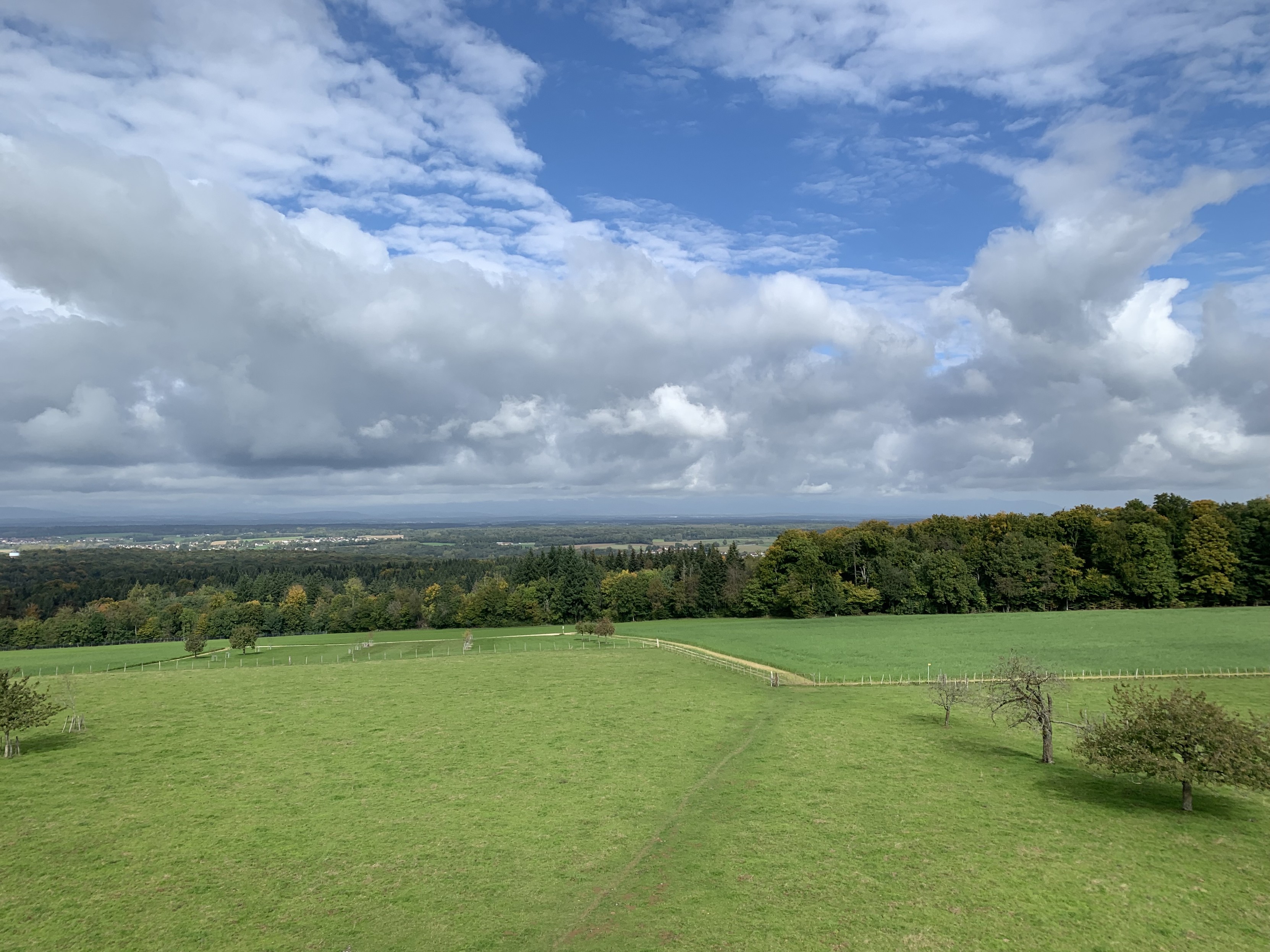 Ehemalige Schweizer Zollhäuser schauen überall etwa gleich aus… herzig die beiden Grenzsteine allein auf der Wiese (und dieses Mal haben die Schweizer ihren Wald nicht gepflegt…). Und dann fragt man sich, wer auf die Idee kommt, einen Aussichtsturn hinzustellen, der nicht mal über die Baumhöhe der einen Seite hinausragt.