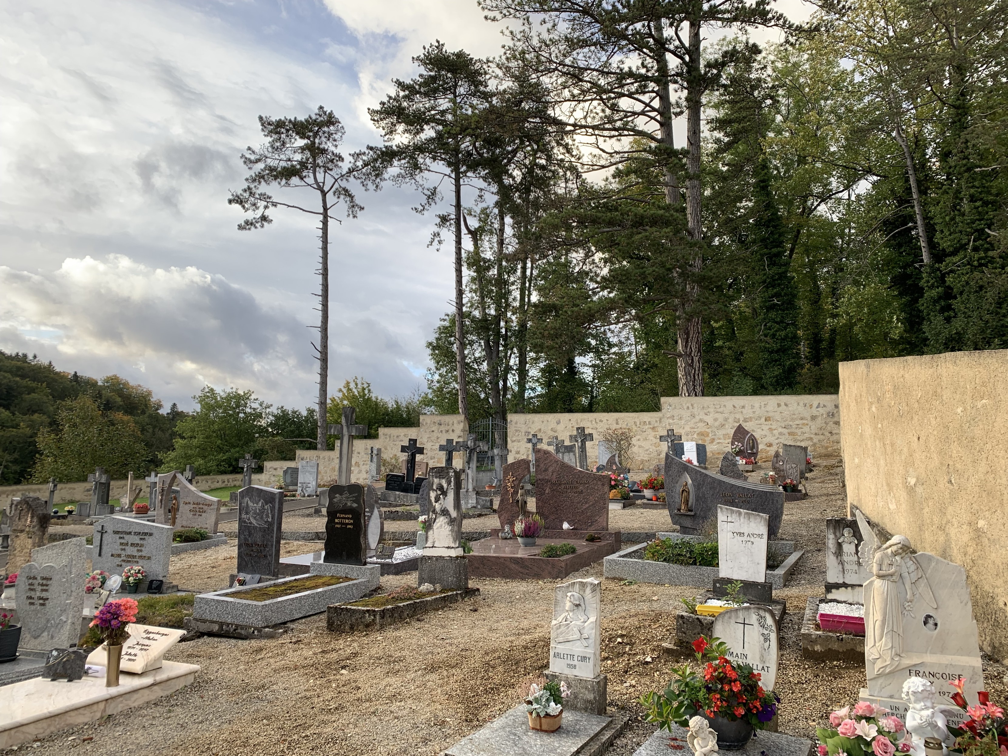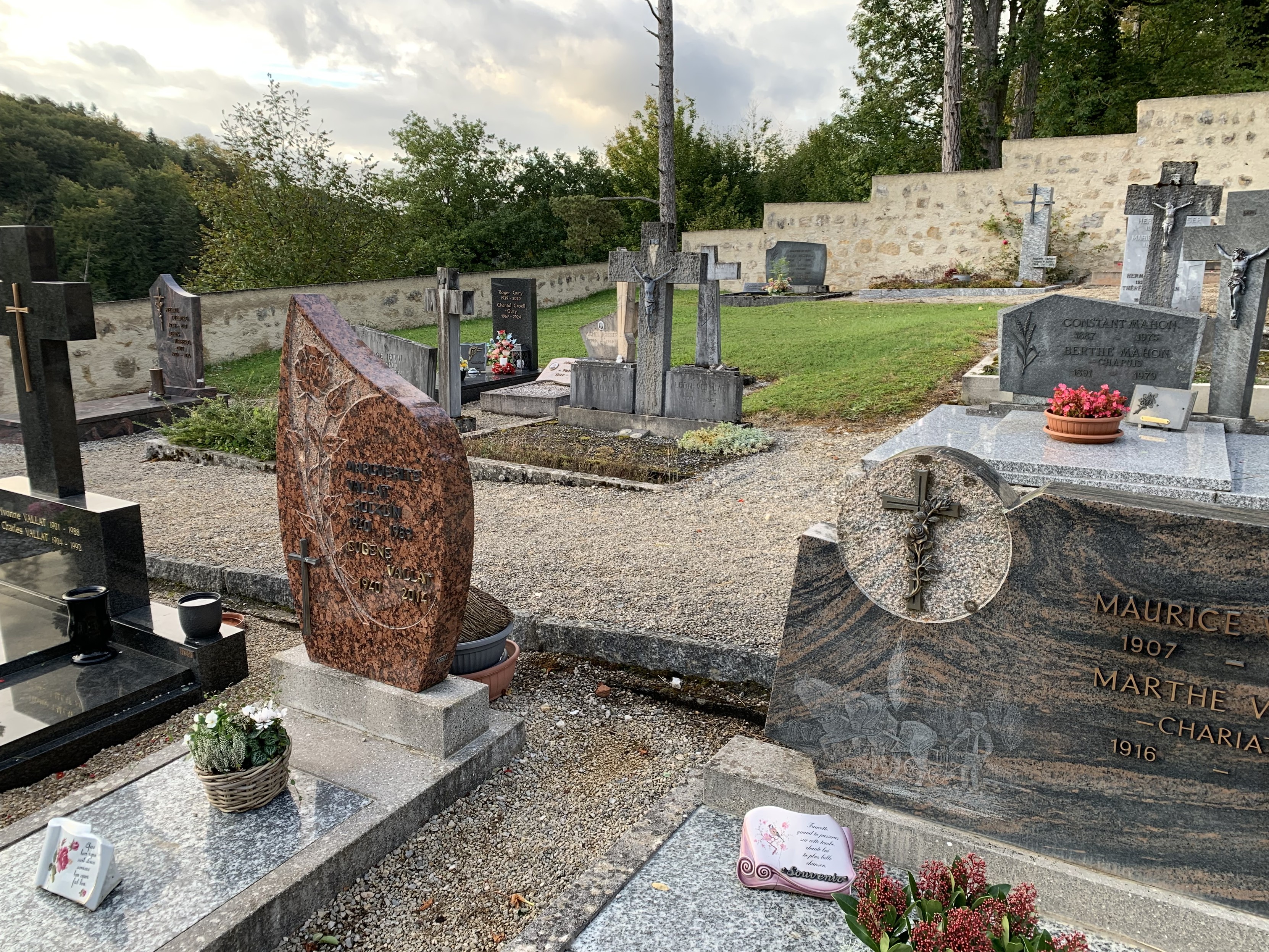 Und wie immer - ein Besuch auf dem Friedhof. Hier heissen sie André und Gury, und diese kleinen Tabletts, welche auf den Grabsteinen deponiert werden, habe ich sonst noch nie gesehen. Die Gräber stehen in Familiengruppen, einige datieren aus dem Jahr 1870. Da war Beurnevésin sozusagen frisch beim Kanton #Bern😀.