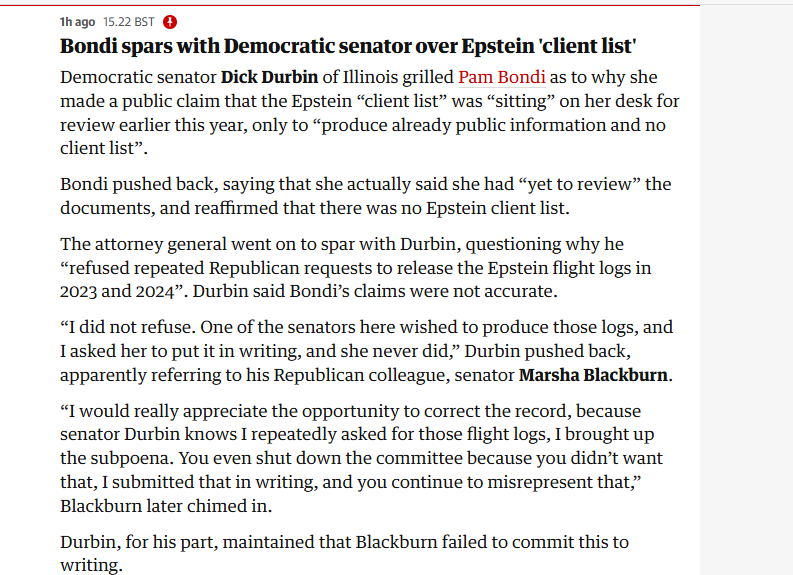 2023 and 2024”. Durbin said Bondi’s claims were not accurate.