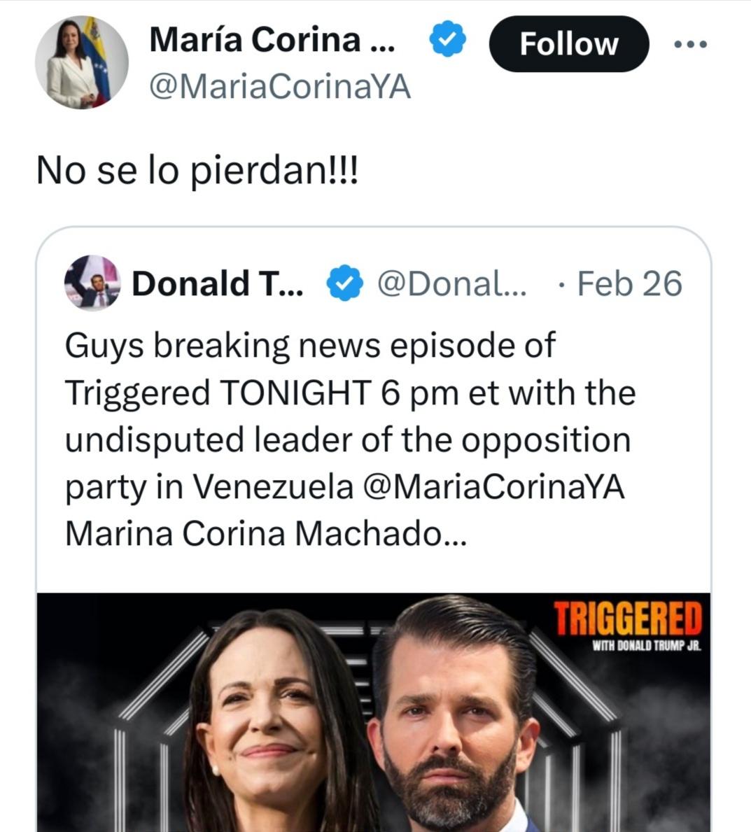 Und sie war schon immer eine Unterstützerin von Donald Trump. Das hat sie offen in diversen Interviews bekundet, schon vor seiner Wiederwahl. Sie als "Anti-Trump" hinzustellen ist also grotesk, sie ist eher Trumps beste Freundin in Venezuela.