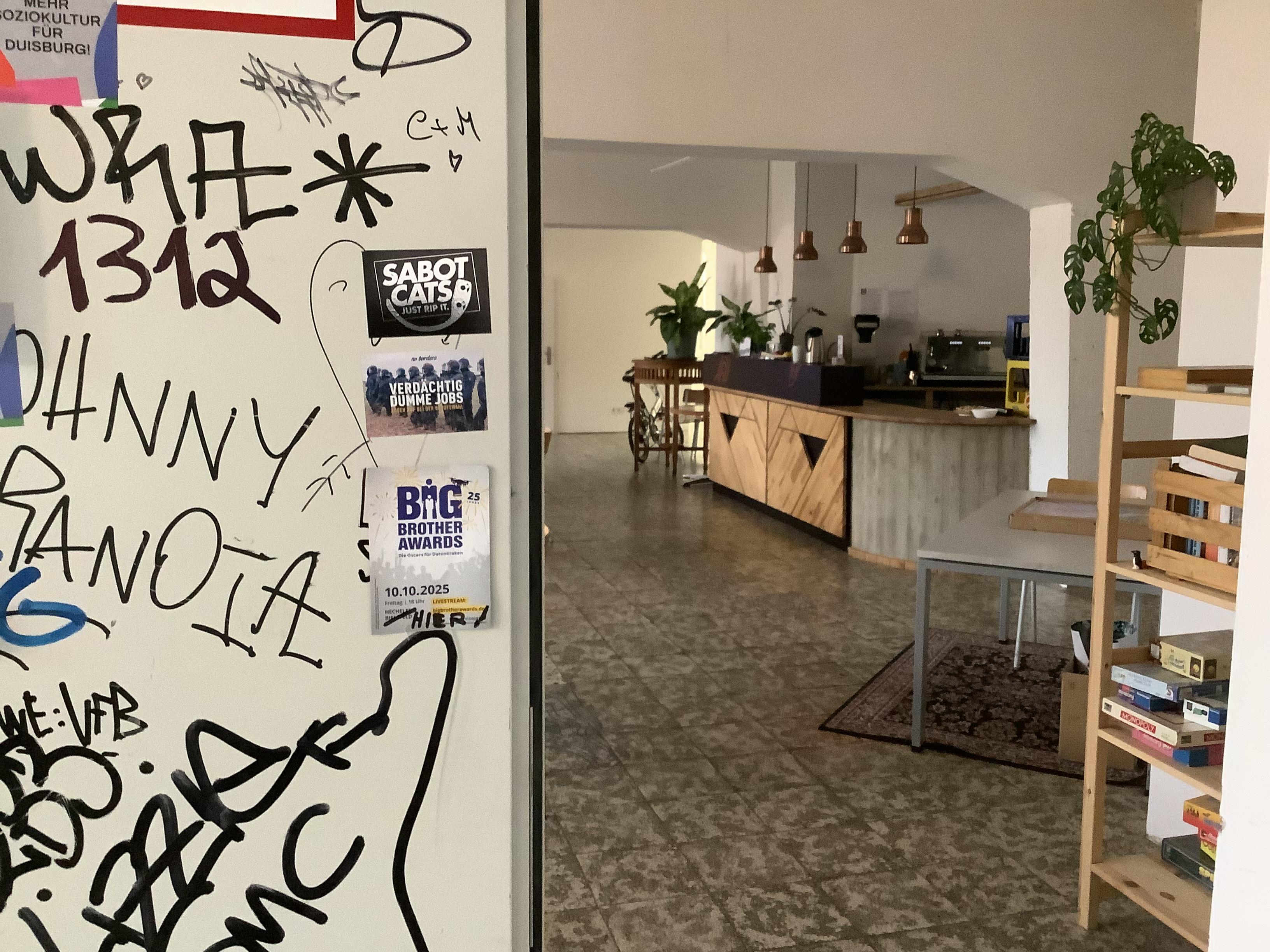 Alles aufgebaut für das vom @space47 gebotene #PublicScreening der #BBA25 @bba feat. @digitalcourage u.a. im #Stapeltor #Duisburg, hier ein paar dezente Wegweiser für Ortsfremde, Lechts-Rinks-Schwache und sonstige Spitzel*innen: