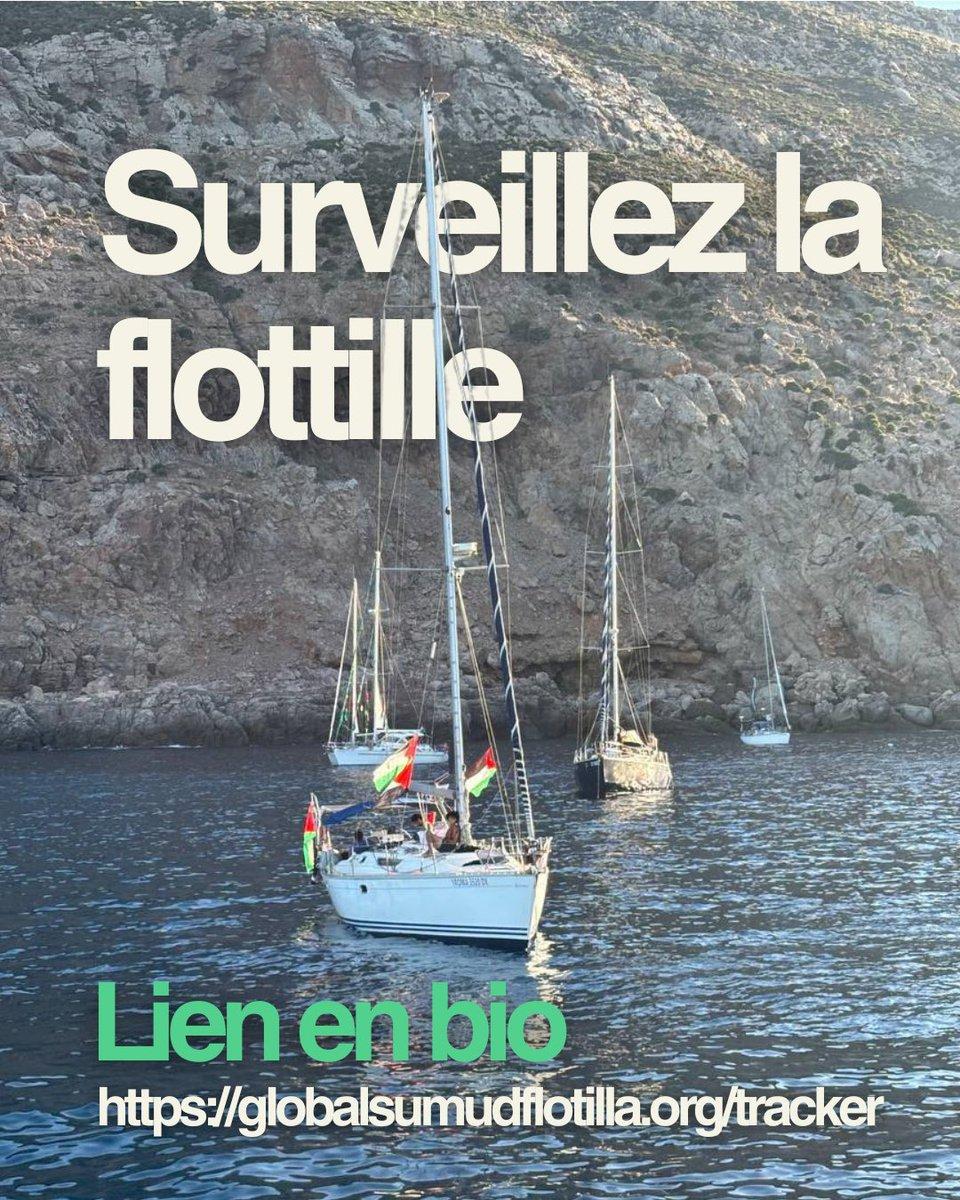 ⛵️🇵🇸 Pour arriver jusqu’à Gaza, nous allons avoir besoin de votre protection : suivez la traversée des 50 bateaux de la @gbsumudflotilla sur ce lien : https://globalsumudflotilla.org/tracker/.
